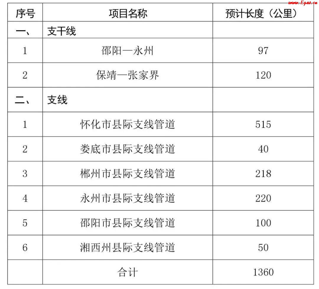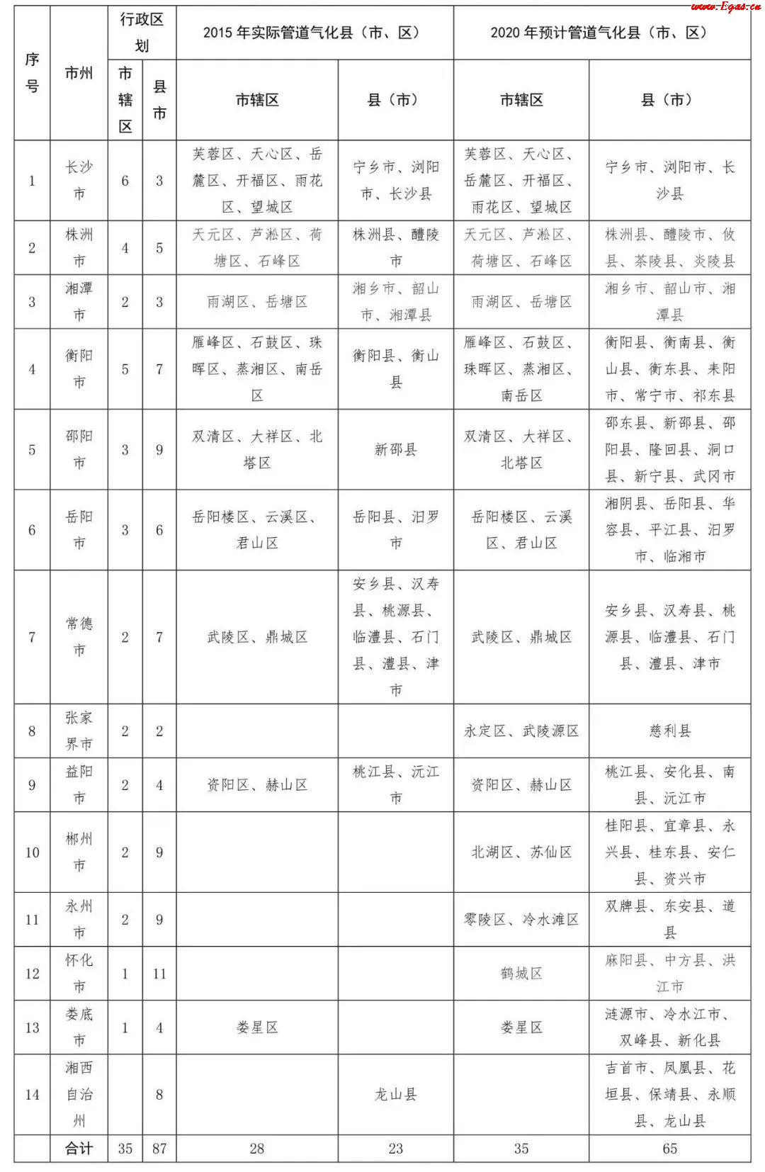 3、管網(wǎng)建設(shè)目標。力爭全省建設(shè)天然氣長輸管道3400公里左右,建設(shè)改造城鎮(zhèn)管網(wǎng)3萬公里;全省14個市州中心城市、65個縣市中心城鎮(zhèn)全部實現(xiàn)管道氣化(見表2),其他縣市采用CNG、LNG氣化。