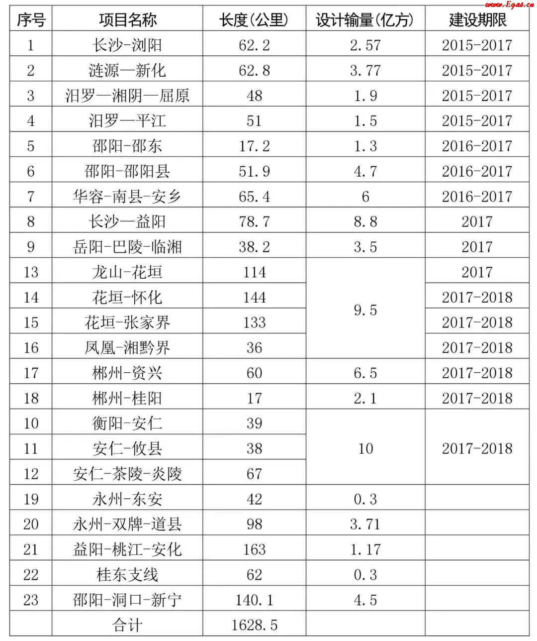 表3:“氣化湖南工程”三年行動計劃建設(shè)管道情況表
