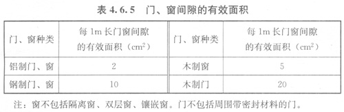 4.6.5門、窗間隙可作為部分給氣口面積,門、窗間隙的有效面積可按表4.6.5的規(guī)定取值。