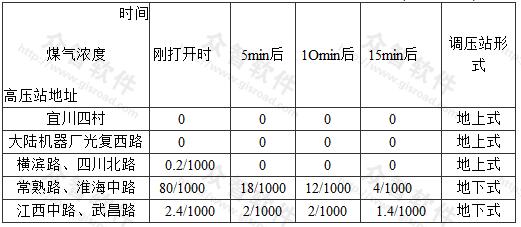 原上海市煤氣公司曾用“臭敏檢漏儀”對調(diào)壓站室內(nèi)煤氣(人工煤氣)濃度進行測定,在正常情況下(通風換氣為每小時2次),地上調(diào)壓站室內(nèi)空氣中的煤氣含量是極少的,詳見表35。