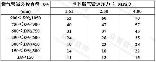 從上述九個特大城市看,門站后高壓輸氣管道一般成環(huán)狀或支狀分布在市區(qū)外圍,其壓力為2.0~4.48MPa不等,一般不需敷設(shè)壓力大于4.0MPa的管道,由此可見,門站后城市高壓輸氣管道的壓力為4.0MPa已能滿足特大城市的供氣要求,故本規(guī)范把門站后燃氣管道壓力適用范圍定為不大于4.0MPa。