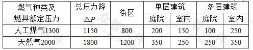 2 把低壓管道的壓力由小于或等于0.005MPa提高到小于0.01MPa。這是考慮為今后提高低壓管道供氣系統(tǒng)的經(jīng)濟性和為高層建筑低壓管道供氣解決高程差的附加壓頭問題提供方便。