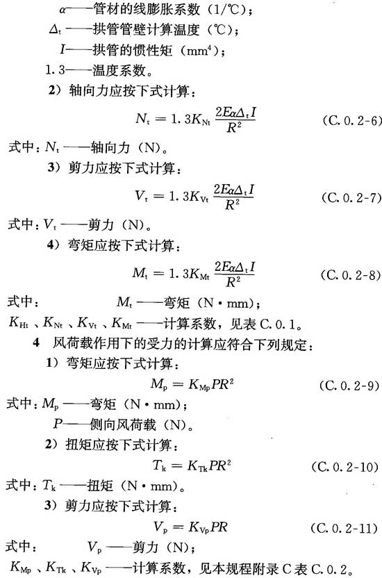 C.0.2 單管拱跨越管道荷載計(jì)算應(yīng)符合下列規(guī)定: