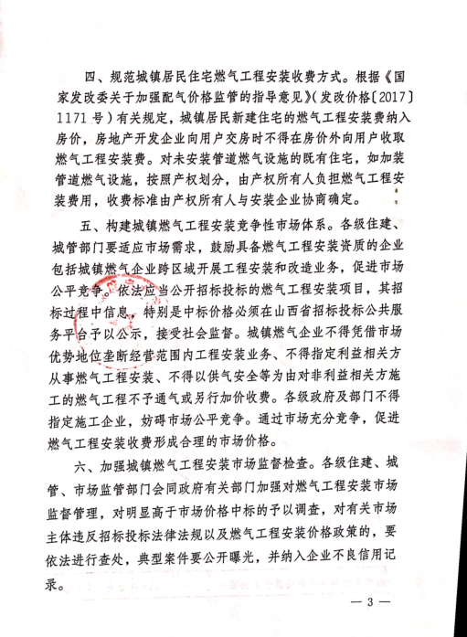 山西:關(guān)于整頓規(guī)范城鎮(zhèn)燃?xì)夤こ贪惭b收費(fèi)有關(guān)問(wèn)題的通知