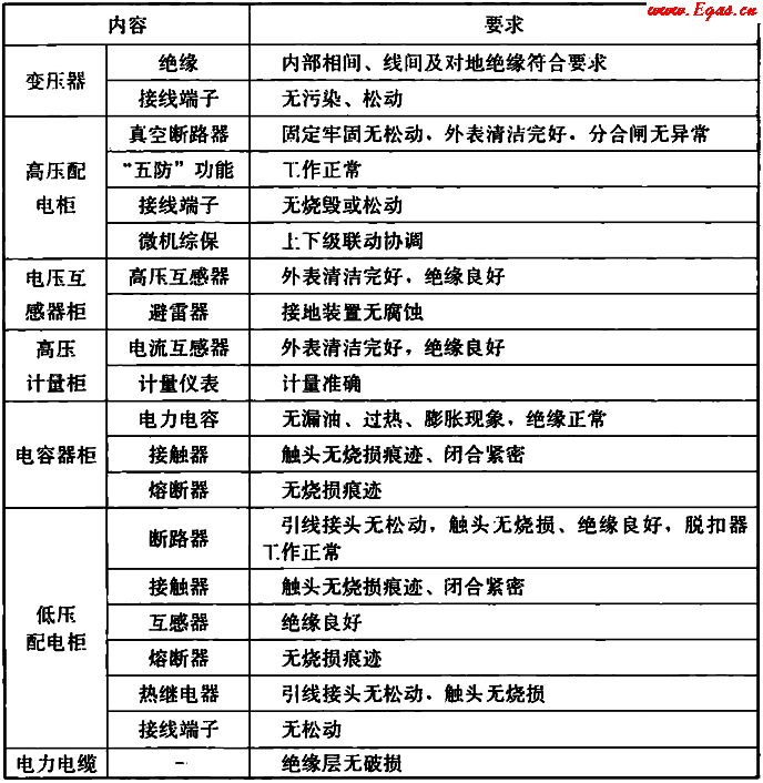 表5.4.6 供電系統(tǒng)設(shè)備設(shè)施維護(hù)內(nèi)容及要求