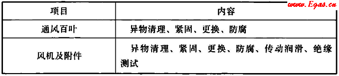 表5.3.4 通風(fēng)系統(tǒng)維護(hù)項(xiàng)目和內(nèi)容