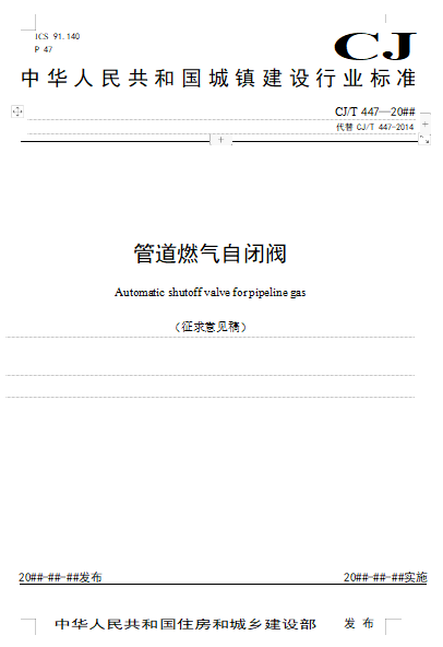 根據(jù)《住房和城鄉(xiāng)建設(shè)部關(guān)于印發(fā)2021年工程建設(shè)規(guī)范標準編制及相關(guān)工作計劃的通知》(建標函〔2021〕11號),我部組織中國城市燃氣協(xié)會等單位修訂了行業(yè)標準《管道燃氣自閉閥(征求意見稿)》(見附件),現(xiàn)向社會公開征求意見。有關(guān)單位和公眾可通過以下途徑和方式提出反饋意見: