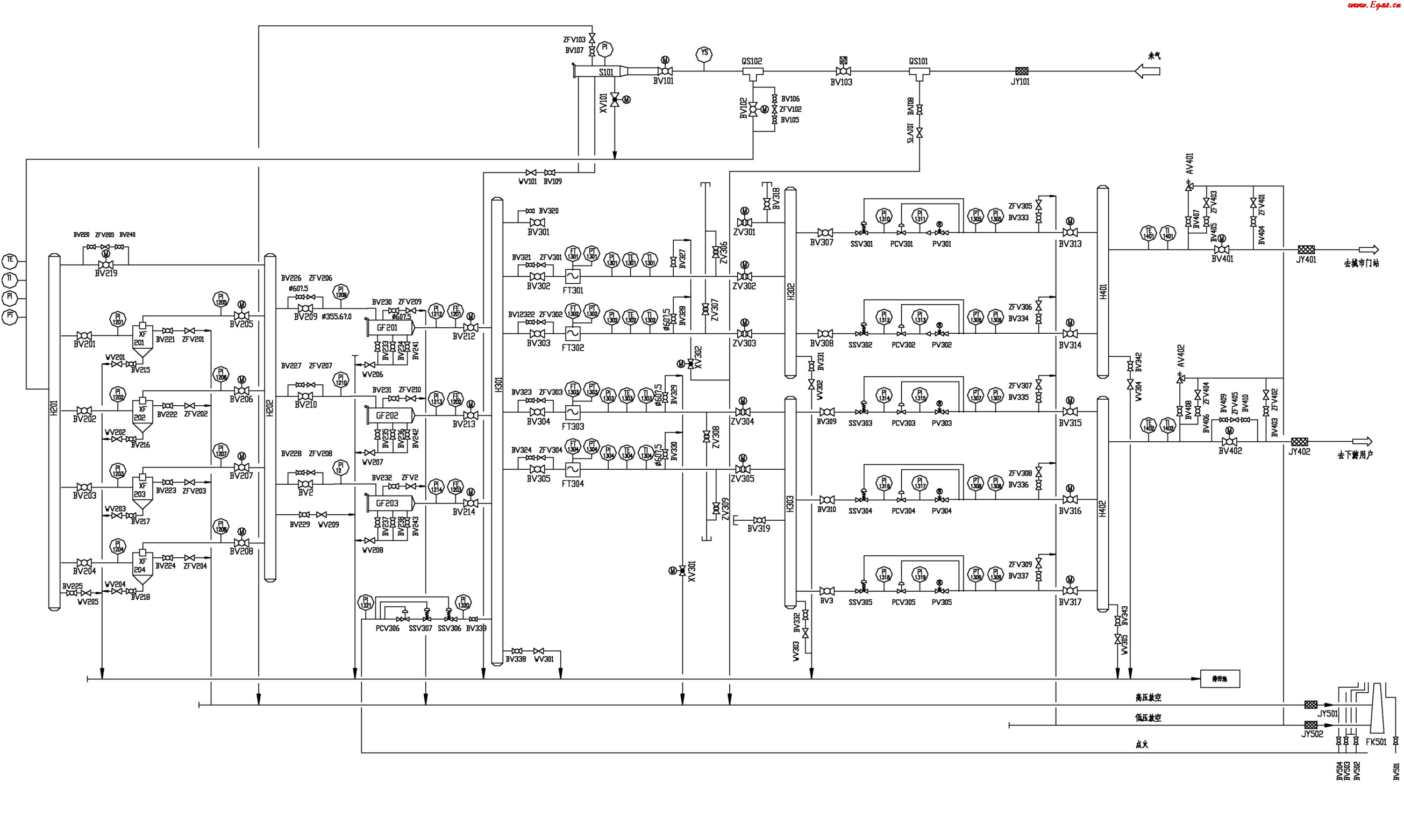 (4)排污。手動(dòng)排污采用雙閥設(shè)置,前端為手動(dòng)球閥,后端為排污閥用于排除過(guò)濾器、匯管等設(shè)備的污物。