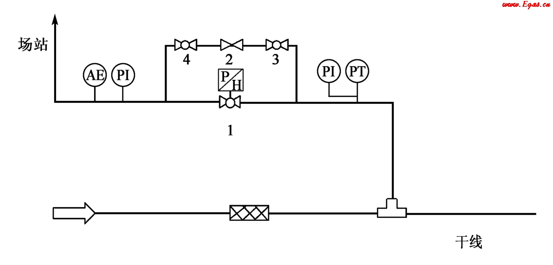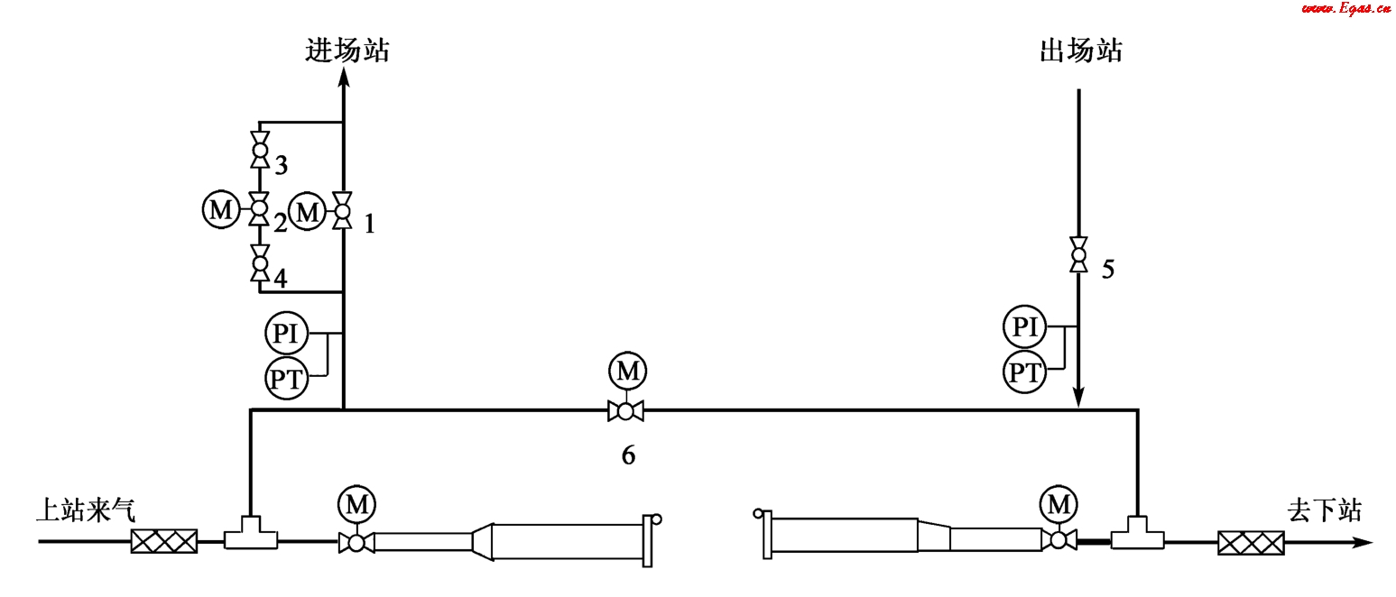 (2)當(dāng)場(chǎng)站內(nèi)不帶壓時(shí),按站場(chǎng)開氣進(jìn)行操作;關(guān)閉閥6。