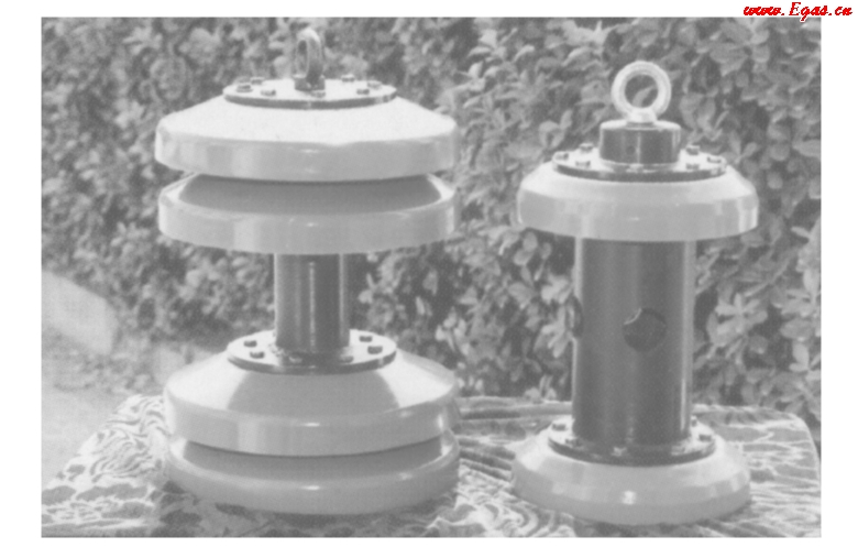 目前,常見的機(jī)械清管器有彈簧支撐型、直型、碟型三種,如圖12-4至圖12-6所示。直型清管器主要用于管道的掃線、上水、排水及沖洗,它具有很強(qiáng)的清污能力、通過能力和交換性,并可以雙向運(yùn)行。蝶型清管器則常用于管道的置換、隔離、掃線,它具有較強(qiáng)的密封能力、通過能力及互換性。
