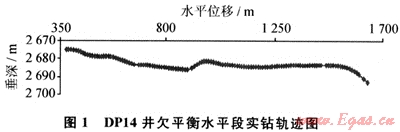 4) 在水平段欠平衡鉆井過程中采用EMWD,實現(xiàn)了水平段軌跡隨鉆測量和實時調(diào)整,圖1給出了DP14井欠平衡水平段實鉆軌跡。
