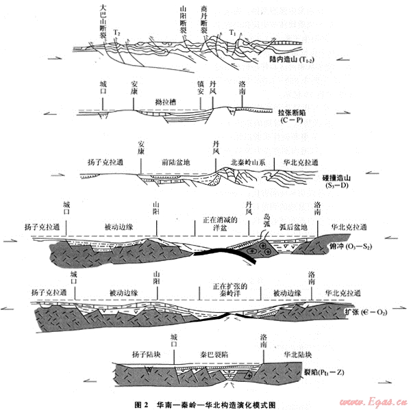 1) 中國早古生代地史演化以多陸塊的裂解-聚合和中國洋的擴(kuò)張-消亡為特征。由此形成了臺內(nèi)和陸緣不同的原型盆地演化序列。在大陸裂解期,臺內(nèi)主要出現(xiàn)裂谷、拗拉槽原型盆地,然后轉(zhuǎn)為臺內(nèi)坳陷。