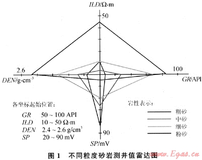 以往的巖性和沉積環(huán)境的研究工作[1~2]都是主要通過巖心觀察或者綜合分析巖屑錄井資料,但取心及巖屑錄井資料都有限。而事實上,每口井的各種測井資料所提供的豐富的地質(zhì)信息并未得到充分的利用,高效利用測井資料中豐富地質(zhì)信息已成為沉積相的研究工作從定性解釋向定量解釋發(fā)展的方向了。近年來,于民鳳等[3]通過蜘蛛網(wǎng)圖和梯形圖的方法,展示了不同沉積相的特征;唐洪等[4]應(yīng)用直方圖或頻率交會圖等方法,從測井相等展示了不同沉積相的特征;嚴(yán)科等[5]實現(xiàn)了沉積微相的人機(jī)交互識別,應(yīng)用Bayes統(tǒng)計方法,建立測井相-沉積微相線性判別模型,取得了明顯的成效。