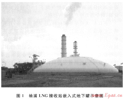 日本LNG接收站的儲罐,部分為地上罐,更多的是地下罐。日本這種大量采用地下罐的情況,幾乎為世界獨有現(xiàn)象,其原因可能為基于地震的安全考慮。具體的罐的類型分為:地上罐、半地下(上)罐、嵌入式地下罐、全地下罐。嵌入式地下罐為頂部或少量罐體露出地面,罐內液體高度最高不超過地面;全地下罐為整個罐均處于地面下。地下罐的罐頂又分為兩種:拱頂形和平頂形。為保護環(huán)境景觀,地下罐周圍、甚至平頂地下罐的頂部,種植草木[6]。接收站除有LNG罐外,部分接收站還有LPG罐。