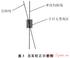 在應(yīng)用趨勢(shì)面分析法對(duì)自然伽馬曲線進(jìn)行標(biāo)準(zhǔn)化處理以后[5],對(duì)密度曲線進(jìn)行校正。