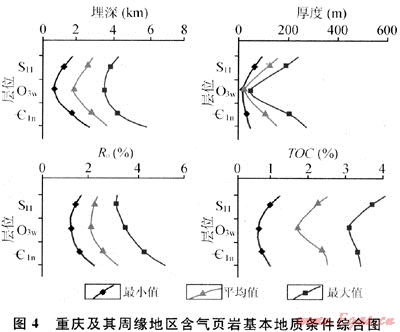 1) 重慶及其周緣地區(qū)與美國(guó)東部頁(yè)巖氣產(chǎn)出地區(qū)在頁(yè)巖形成地質(zhì)條件上具有諸多可比性,下寒武統(tǒng)筇竹寺組、上奧陶統(tǒng)五峰組-下志留統(tǒng)龍馬溪組黑色頁(yè)巖地層區(qū)域分布廣、厚度大、埋藏適中、總有機(jī)質(zhì)含量高、成熟度高、微裂縫發(fā)育,具有形成頁(yè)巖氣聚集的有利地質(zhì)條件,目前已發(fā)現(xiàn)多處鉆井氣顯示異常,是我國(guó)頁(yè)巖氣勘探開發(fā)可能有所突破的最有利區(qū)域之一。