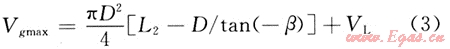 管式液塞捕集器的最大波動(dòng)體積Vgmax與儲(chǔ)液段尺寸關(guān)系見式(3):