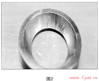 (1) 在壓縮氣體行業(yè),采用液壓加氣子站車裝卸運輸高壓天然氣時,閥門在開啟時壓力非常高,并通常含有一定量的雜質(zhì),氣體或液壓油在流動的過程中,在高壓的作用下,當(dāng)高壓循環(huán)油或天然氣通過閥門時,由于柱塞泵瞬間壓力過大,氣體溫度會快速升高,使聚甲醛閥體的。型密封圈變軟,這使氣體的雜質(zhì)在高壓的沖擊下,很容易在通過閥體時放射性劃傷密封面(見圖2),造成氣體泄漏。
