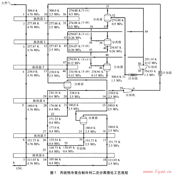 Key words:liquefied natural gas;natural gas liquefaction;propane precooled mixed refrigerant;secondary separation