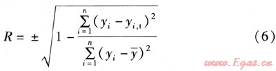在利用上述模型進(jìn)行預(yù)測時,需要作相關(guān)系數(shù)檢驗(yàn),以判定預(yù)測模型的合理性和適用性。相關(guān)系數(shù)是描述兩個變量之間的線性相關(guān)關(guān)系密切程度的數(shù)量指標(biāo),用R表示。