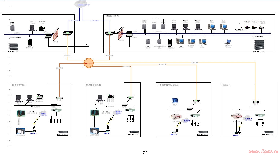 廣域網(wǎng)通信:對于SCADA系統(tǒng)的廣域網(wǎng)通信,從中心調(diào)度層到各站控系統(tǒng)的廣域網(wǎng)連接,通過廣域網(wǎng)路由器和租用專業(yè)通信公司的信道,以光纖或無線GPRS/CDMA方式,實(shí)現(xiàn)遠(yuǎn)程數(shù)據(jù)的傳遞和交換。通信協(xié)議采用MODBUS、DNP3等通信協(xié)議