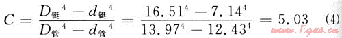 該井無磁鉆鋌及下斯倫貝謝工具長為38.69m,本體最小外徑為165.1mm,以該段最小外徑為165.1mm計(jì)算與Φ139.7mm篩尾管剛度比值(C)。