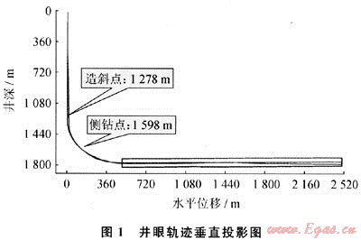 井眼軌跡垂直投影如圖1所示,井身結(jié)構(gòu)數(shù)據(jù)如表1所示。