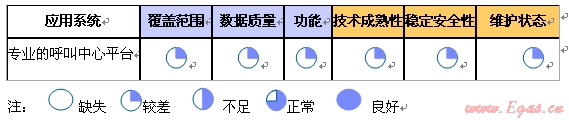 四大燃?xì)饧瘓F(tuán)的項目覆蓋全國幾十個城市,同時每個項目的基礎(chǔ)條件也層差不齊,每個項目公司都有自己的獨立的流程以及每個省市都有額外的燃?xì)夤芾項l例,因此建立統(tǒng)一的呼叫中心平臺在目前來說還不可實現(xiàn)?,F(xiàn)在的現(xiàn)狀是每家公司各自為政,擁有的自己的熱線中心,從簡單的幾部電話到專業(yè)的呼叫中心平臺,擁有專業(yè)呼叫中心平臺的數(shù)量大概只占所有項目的15%左右。目前四大燃?xì)饧瘓F(tuán)呼叫中心的狀況比較類似,幾乎都在一條水平線上,所以可以用如下的表格統(tǒng)一代表四大燃?xì)饧瘓F(tuán)的呼叫中心水平: