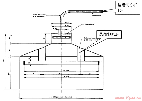 歐洲和南美的取樣器是個(gè)半封閉的罩形結(jié)構(gòu),煙氣通道和水蒸氣通道隔離,取樣原理采用我國(guó)燃?xì)鉄崴鞯姆绞?,也是按照熱?fù)荷的分級(jí)系列化制造,但是分級(jí)較少,不同熱負(fù)荷的燃燒器用鍋直徑和加水量有相同的情況,這種取樣器結(jié)構(gòu)和制作復(fù)雜,消耗材料多,笨重、造價(jià)高,對(duì)于系列化的結(jié)構(gòu)尺寸不完整,焊接要求高且難以保證,特別對(duì)于小功率燃燒器來講高度尺寸顯然不合理,甚至?xí)⒒鹧嫒堪菰谌悠鲀?nèi),造成二次空氣無法進(jìn)入,隨著使用時(shí)間增長(zhǎng)變形也越來越大,焊接應(yīng)力致使修復(fù)困難。