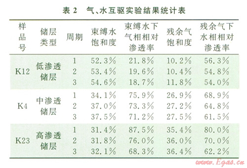 實(shí)驗(yàn)樣品選取某水驅(qū)砂巖氣藏型儲氣庫儲層巖心,代表地下儲氣庫高、中、低各類滲透率級別的儲層,樣品基礎(chǔ)參數(shù)見表l。