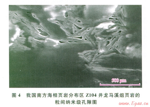 孔隙度是確定游離氣含量和評價頁巖滲透性的重要參數(shù)。頁巖氣儲層通常具有低孔隙度(小于l0%),低滲透率(小于0.001 mD)的特征。泥頁巖中通常同時存在原生孔隙和次生孔隙,原生孔隙系統(tǒng)由十分微細的孔隙組成,形成了大量的內表面積,從而提供了潛在的吸附位置,以存儲大量氣體,但原生孔隙系統(tǒng)滲透率很低。研究區(qū)內l7個下志留統(tǒng)龍馬溪組泥頁巖樣品的壓汞實驗結果表明:龍馬溪組黑色頁巖孔隙度介于1.71%~l2.75%,平均為4.71%,其頻度多分布在孔隙度超過4.0%的范圍,占到41.2%。相對于美國五大含氣頁巖3%~l4%的孔隙度而言,研究區(qū)龍馬溪組頁巖孔隙度屬于中等偏高。