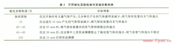 由表3中的實(shí)驗(yàn)現(xiàn)象確定反應(yīng)物硫化亞鐵的粒度為20目。