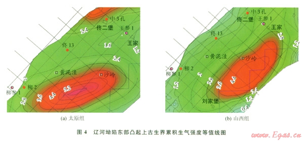 3)遼河坳陷東部凸起上古生界泥頁(yè)巖累積生氣強(qiáng)度大、生氣能力高、含氣量大,具備頁(yè)巖氣資源潛力,是下一步非常規(guī)天然氣開(kāi)發(fā)的重點(diǎn)層系和地區(qū)。