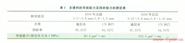 如表l所示,2006年后支撐劑粒徑選擇為:0.45—
