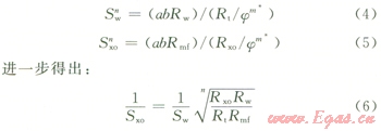 由于阿爾奇公式中的膠結(jié)指數(shù)m是針對均質(zhì)地層而設(shè)計的,針對網(wǎng)狀裂縫系統(tǒng)下的砂巖儲層,m可以用可變膠結(jié)指數(shù)m*來替代,m*與巖石總孔隙度、次生孔隙度之間存在復(fù)雜的非線性函數(shù)關(guān)系,這里就不再冗述。這樣便可以得到裂縫性砂巖儲層Sw、Sxo的表達(dá)式為: