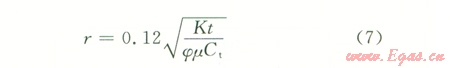 根據滲流力學理論,對于封閉氣藏中定產生產井,當處于擬穩(wěn)定流動時,在任意一點處有: