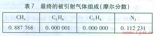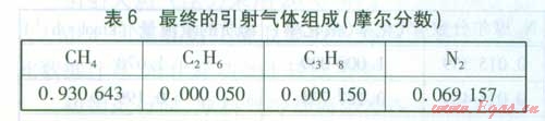 ①最終引射氣體組成及相關(guān)數(shù)據(jù) 最終引射氣體組成見(jiàn)表6。