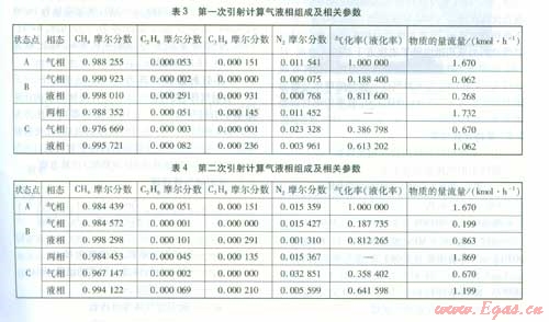 氣相0.670 kmoL/h與原料氣組成的混合氣體即為第二次引射的引射氣體,經(jīng)計(jì)算得引射氣體組成及相關(guān)參數(shù)見(jiàn)表4狀態(tài)點(diǎn)A。