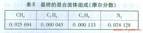 1.000 kmoL/h的天然氣,0.670 kmoL/h的回流復(fù)熱氣及0.062 kmoL/h的被引射氣體組成l.732;kmol/h的混合流體,經(jīng)計(jì)算其組成及相關(guān)參數(shù)見(jiàn)表3狀態(tài)點(diǎn)c。
