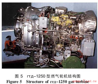 гтд-1250型燃氣輪機的外形與結(jié)構(gòu)分別見圖4和圖5。該機為簡單循環(huán)燃氣輪機,低壓壓氣機與高壓壓氣機均為單級離心式,燃燒室為回流環(huán)形,高壓渦輪、低壓渦輪與動力渦輪均為單級軸流式。