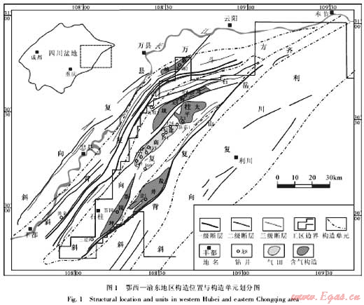 鄂西—渝東地區(qū)位于四川盆地東緣,東起湖北利川,西至重慶萬縣豐都一帶,面積約21000km2(圖1)。構(gòu)造位置處于川東褶皺帶與湘鄂西褶皺帶的結(jié)合部位,包括利川復(fù)向斜、齊岳山復(fù)背斜、石柱復(fù)向斜、方斗山復(fù)背斜和萬縣復(fù)向斜5個(gè)二級構(gòu)造單元[4]。