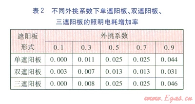③單遮陽(yáng)板、多遮陽(yáng)板基本不影響照明電耗。