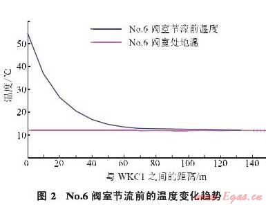 由于距離較遠,輸量較小,管內的氣體流速僅為0.70~0.75m/s,導致No.6閥室處管道內天然氣節(jié)流前的溫度與地溫基本相同。