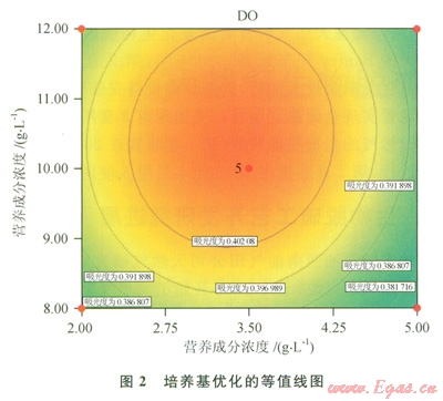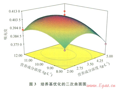 利用計算機輔助設(shè)汁,采用表面響應(yīng)法快速篩選微生物能夠利用的營養(yǎng)成分,確定脫硫微生物的所需的營養(yǎng)物種類;采用中心組合設(shè)計方法優(yōu)化培養(yǎng)基中主要化學(xué)品的組成(圖2、3)。利用Design Expert軟件篩選顯著變量,建立回歸方程,由回歸方程對菌種生長能力進行預(yù)測,并得到最優(yōu)培養(yǎng)基組成。同時應(yīng)用單因素實驗篩選生長因子及微量元素,形成了完整的培養(yǎng)基配方。
