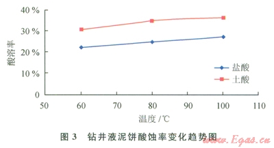 利用酸與巖屑及鉆井液中酸溶性成分反應(yīng)生成可溶性鹽類(lèi)的原理,用適當(dāng)濃度的酸液溶蝕卡住鉆具的巖屑或泥餅,達(dá)到解卡的目的。圖1、2、3分別是巖屑、鉆井液泥餅的酸溶評(píng)價(jià)實(shí)驗(yàn)。