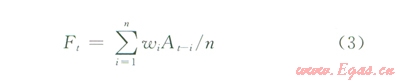 式中A為利用加權算術平均法得到的預測值;Ai為第i個歷史值,1≤i≤n;wi為第i個歷史值權重值。