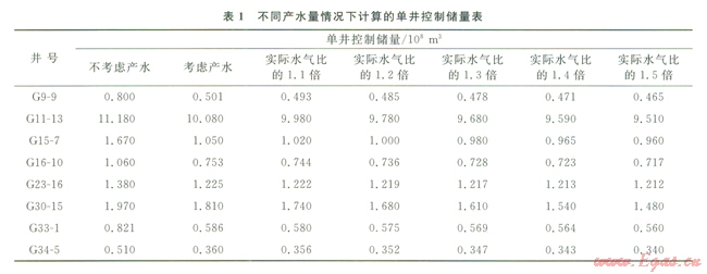 式中A、B、C、D、E、F分別為氣井氣相或水相的產(chǎn)能方程系數(shù),WGR為水氣體積比。通過該式就可求出氣井的控制儲量Go從上式可以看出:WGR越大,其單井控制儲量就越低。所以,控制好氣井的出水,就能提高氣井的產(chǎn)能,從而提高氣井對儲量的控制程度。