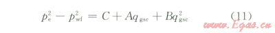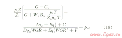式(15)即為低滲透氣藏氣井產(chǎn)水后的考慮水氣比的穩(wěn)態(tài)產(chǎn)能方程式。當WGR=0時,即氣井不產(chǎn)水時,氣井產(chǎn)能方程式就由式(15)變?yōu)槭?span lang="EN-US">(11)。通過對水氣比(WGR)的引入,式(15)更好地表述了氣井產(chǎn)水對氣井產(chǎn)能的影響,更能準確地反映在一定地層壓力下,或一定階段氣井的流人動態(tài)規(guī)律。