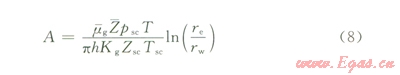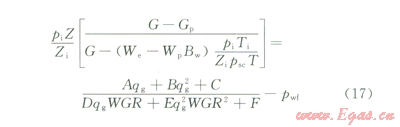 對于高含共生水的定容封閉氣藏或邊底水不活躍的氣藏,可以認為沒有水驅(qū)的作用,氣井產(chǎn)出的水都來自地層共生水,“即We=0。此時產(chǎn)水低滲透氣井的單井控制儲量方程就可變?yōu)椋?span lang="EN-US">