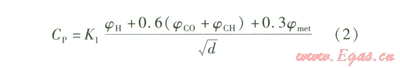 燃燒勢Cp,是反映燃氣燃燒內(nèi)焰高度的指標,計算公式為: